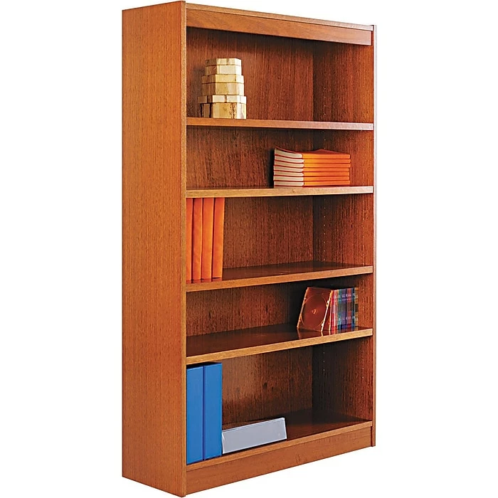 Alera 6-Shelf medium cherry square corner wood veneer bookcase measures 72″ x 36″ x 12″ and 11 3/4″ deep shelves. Bookcase features wood veneer fully-finished back and has the capacity to hold up to 90 lbs.
