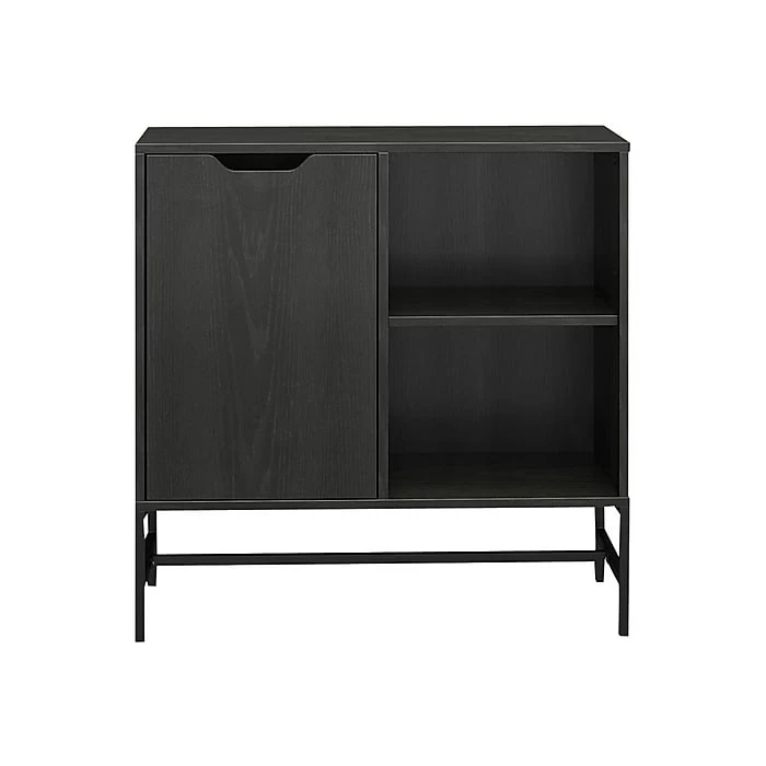 Add a modern feel to your home with the Ameriwood Modine bookcase. A stylish tone, clean lines, and a cutout handle make this bookcase a must-have in any space. With the open and closed concept, you get the best of both worlds in one stunning piece. Organize your favorite books or display collectibles on the two open shelves, then tuck away anything you want to keep out of sight behind the cabinet door. The Ameriwood Modine bookcase is made of durable MDF and sturdy powder-coated metal, and ships flat to your door in one box.