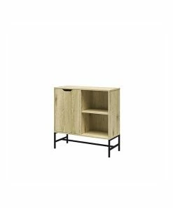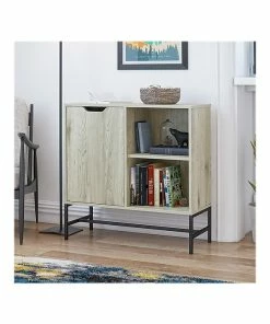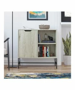 Add a modern feel to your home with the Ameriwood Modine bookcase. A stylish tone, clean lines, and a cutout handle make this bookcase a must-have in any space. With the open and closed concept, you get the best of both worlds in one stunning piece. Organize your favorite books or display collectibles on the two open shelves, then tuck away anything you want to keep out of sight behind the cabinet door. The Ameriwood Modine bookcase is made of durable MDF and sturdy powder-coated metal, and ships flat to your door in one box.