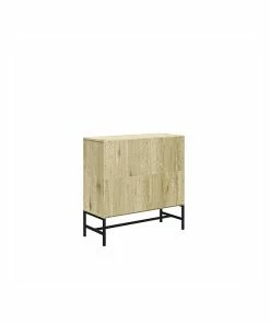 - Modern bookcase made of durable MDF in a natural finish and sturdy powder-coated metal