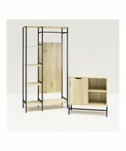 - Two open shelves (one fixed, one adjustable) and one closed cabinet shelf for books and other essentials