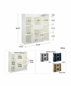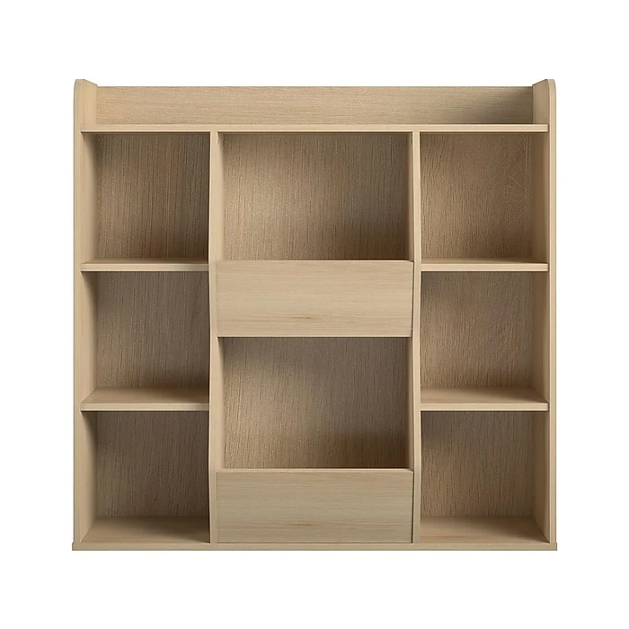 - Keep everything organized in the eight open compartments, and display favorite books on the top ledge of the bookcase for easy access (all shelves are fixed)