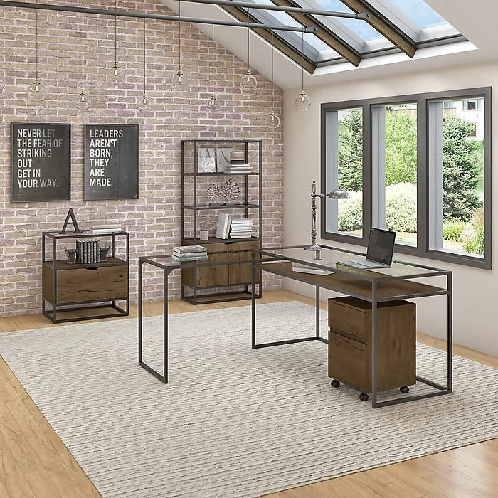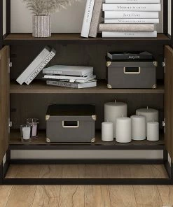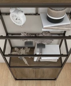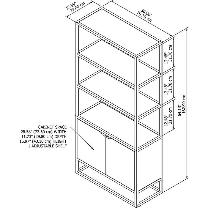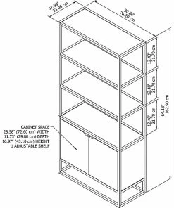 By combining a trio of distinct materials into an industrial modern design, the Bush Furniture Anthropology 5-shelf bookcase with doors offers a unique storage solution that’s equal parts style, function and durability. Cabinet doors cover the bottom of the tall bookshelf while the upper portion is left open to show off your personal library or brighten up the room with pictures and decorations. Each shelf supports 25 pounds, so storing paperback and hardcover books is never an issue. Four shelves are fixed for stability while the cabinet contains one adjustable shelf to accommodate bulkier items like binders and photo albums. An anti-tip wall restraint is included for family-friendly safety and security in any home office or living room.