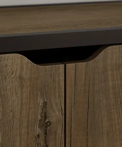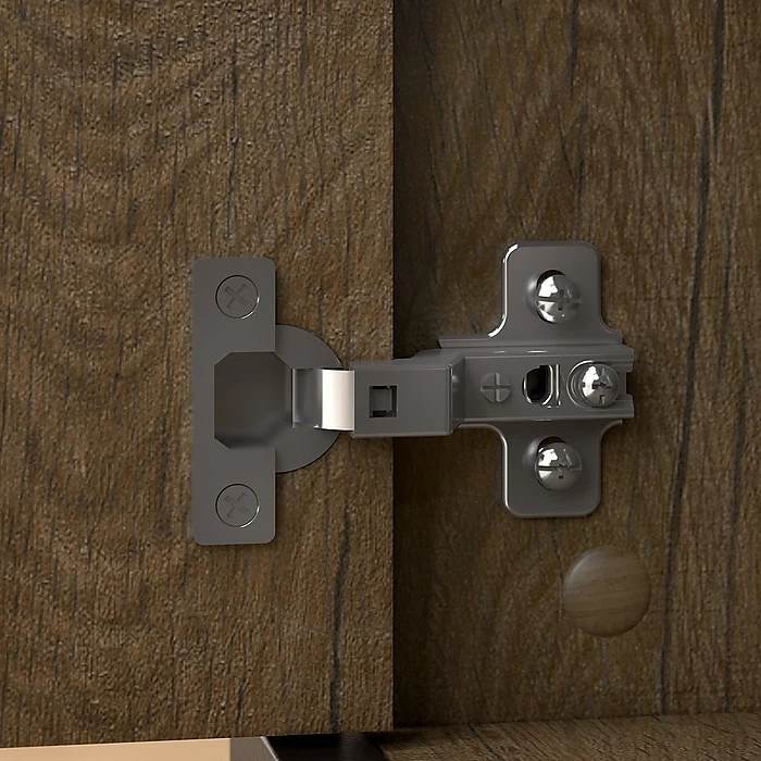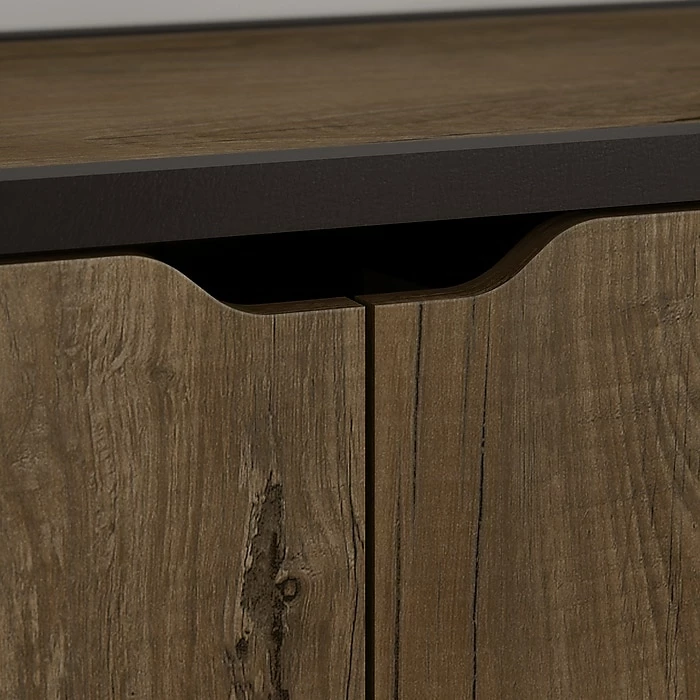- Cabinet doors feature Euro style hinges and cut out handles for easy access to contents