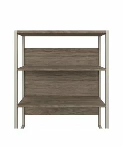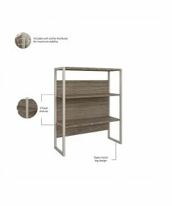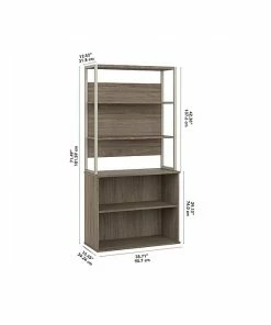 The Bush Business Furniture Hybrid tall etagere bookcase offers a stylish, long-lasting storage and display solution for the modern professional. Organize books and other reference materials, or decorate your workspace to give it a personal touch on shelves that support up to 50 lbs. each. The lower section contains one fixed shelf for stability and another that can be raised or lowered to accommodate items of various sizes. The open shelves are perfect for storing a small library or showcasing your favorite plants, pictures, and knickknacks. The tall bookcase’s stable design and included wall attachment hardware make it a safe choice for use in virtually any home or professional office environment. Find the perfect look for your space with five contemporary finish options: black walnut, modern hickory, platinum gray, storm gray, and white. This five-shelf bookcase has been meticulously tested to meet or exceed ANSI/BIFMA quality standards for safety, durability, and performance and is backed by the Bush Business Furniture 10-year manufacturer warranty. See the full Bush Business Furniture Hybrid collection for coordinating items to enhance your workspace as needed, including computer desks, file cabinets, and storage cabinets (coordinating items sold separately). American-made with US and imported parts.