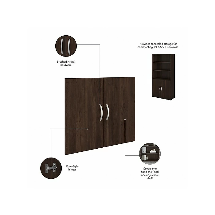 - Bundle includes: tall five-shelf bookcase, half-height door kit
