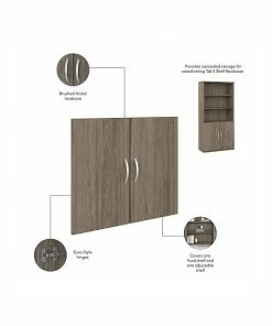 The Bush Business Furniture Hybrid tall five-shelf bookcase with doors offers a stylish, long-lasting storage and display solution for the modern professional. Organize books and other reference materials, or give your workspace a personal touch with pictures and decorations on shelves that support up to 50 lbs. each. Two shelves are fixed for stability, while three can be raised or lowered to accommodate items of various sizes. Cabinet doors conceal the two lower shelves for the materials you want to be kept in order but out of sight. The tall bookshelf’s stable design and included wall attachment hardware make it a safe choice for use in virtually any home or professional office environment. Find the perfect look for your space with five contemporary finish options: black walnut, modern hickory, platinum gray, storm gray, and white. This tall bookcase cabinet has been meticulously tested to meet or exceed ANSI/BIFMA quality standards for safety, durability, and performance and is backed by the Bush Business Furniture 10-year manufacturer warranty. See the full Bush Business Furniture Hybrid collection for coordinating items to enhance your workspace as needed, including computer desks, file cabinets, and storage cabinets (coordinating items sold separately). American-made with US and imported parts.