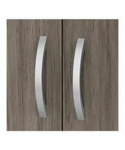 - Bookcase with doors made of laminate over engineered wood in a modern hickory finish
