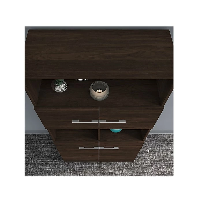 - Top shelf and open cubby spaces are perfect for showcasing professional achievements, organizing books, or displaying decorations