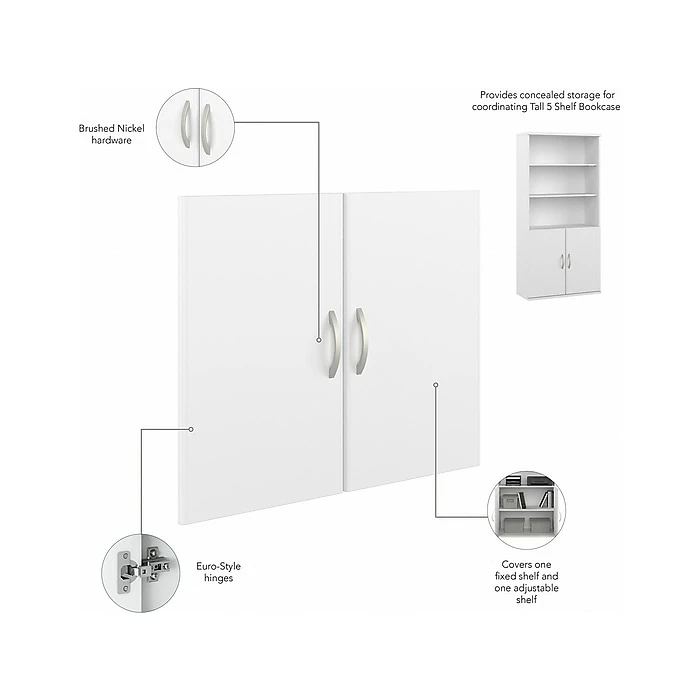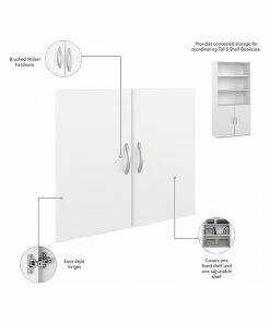 - Bundle includes: tall five-shelf bookcase, half-height door kit
