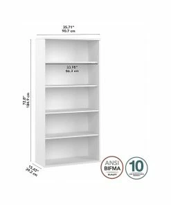 The Bush Business Furniture Studio A tall five-shelf bookcase with doors combines a fresh contemporary appearance with the commercial-quality construction needed to withstand years of everyday use. Organize books and reference materials, or display pictures and decorations on the shelves that support up to 50 lbs. each. Two shelves are fixed for stability, while three can be raised or lowered to accommodate items of various sizes. The tall bookcase’s stable design and wall attachment hardware make it a safe choice for use in virtually any home or professional office environment. This tall bookcase has been meticulously tested to meet or exceed the ANSI/BIFMA standards for safety, durability, and performance and is backed by a 10-year warranty. American-made with US and imported parts.