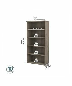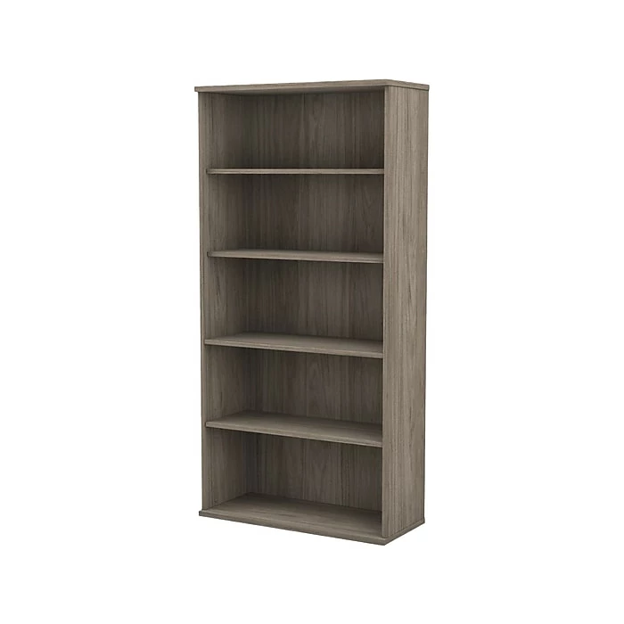 The Bush Business Furniture Studio C five-shelf bookcase looks great, works hard, and adjusts to fit the needs of your office. Designed with two fixed and three adjustable shelves, the tall bookcase holds your books and reference materials with room for your favorite decorative accents. Store a variety of items on the spacious and durable shelves designed to hold up to 50 lbs. each. A thermally fused laminate finish fends off scratches, stains, and dents throughout years of everyday use. The five-shelf bookcase features a classic design, but comes in your choice of the several contemporary and traditional finishes to fit perfectly in any workspace. Purchase a set of bookcases to build a complete storage wall that organizes your office and expresses your style. This five-tier bookcase is backed by a 10-year warranty and meets ANSI/BIFMA quality test standards. American-made with US and imported parts.