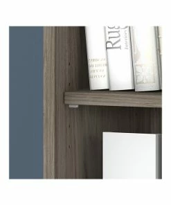 - Bookcase made of laminate over engineered wood in modern hickory finish