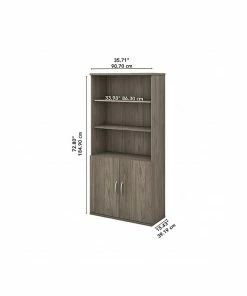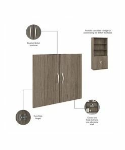 The Bush Business Furniture Studio C five-shelf bookcase with doors looks great, works hard, and adjusts to fit the needs of your office. Designed with two fixed and three adjustable shelves, the bookcase holds your books and reference materials with plenty of room for your favorite decorative accents. Confidently store a variety of items on the spacious and durable shelves, designed to hold up to 50 lbs. each. A thermally fused laminate finish fends off everyday damage such as scratches and stains throughout years of everyday use. Two doors with smooth Euro-style hinges conceal your office supplies and add an eye-catching touch to your workspace. This tall bookcase with doors comes with a 10-year warranty and meets ANSI/BIFMA quality test standards. See the full collection for coordinating items available to make your office your own with Bush Business Furniture Studio C. American-made with US and imported parts.