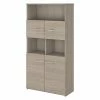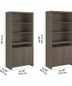 The Bush Furniture Bristol tall bookcase with doors presents a practical storage and display solution with contemporary style. Take advantage of the bookcase’s open shelving to organize your personal library or add charm to any room with pictures and home decor. Two of the upper shelves can be moved up or down to accommodate larger books and decorations while another is fixed for stability. The slim center cubby provides a perfect place to stash magazines, work in progress, and other household items. The bottom of the bookcase features cabinet doors that open to reveal one fixed shelf and one adjustable shelf. Wall attachment hardware is included for family-friendly safety and security. This bookcase has been tested to meet ANSI/SOHO standards for safety and performance and is backed by a 1-year warranty. See the full collection for coordinating items available.