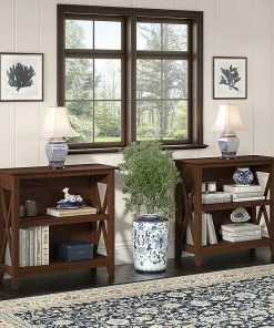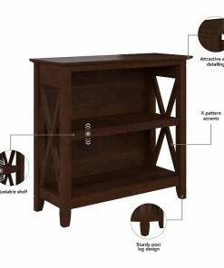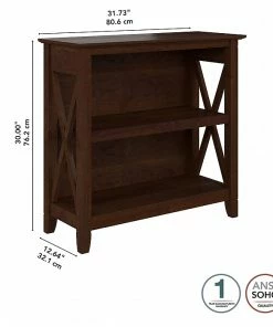 The Bush Furniture Key West small two-shelf bookcase offers a practical storage and display solution that gives your home a touch of casual style. This small bookshelf features a compact, versatile design that makes it a perfect choice for use in a home office, living room, entryway, or virtually any other residential space. One fixed shelf and one adjustable shelf accommodate books, reference materials, and decorations of various sizes. Each shelf supports up to 35 lbs., so you can store and display larger items with confidence. A post leg design and X-pattern accents convey a casual appearance that works well with cottage, coastal, and modern farmhouse style. This small bookcase has been tested to meet ANSI/SOHO quality standards for safety and performance and is backed by the Bush Furniture 1-year manufacturer warranty. See the full collection for coordinating items available.