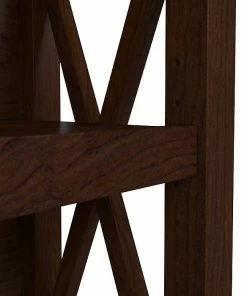 - Small two-shelf bookcase offers convenient storage and display solution for virtually any work or living space; made of engineered wood in a Bing cherry finish