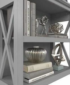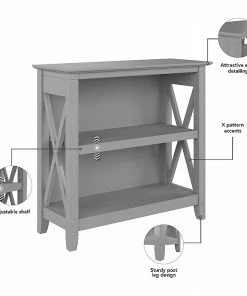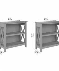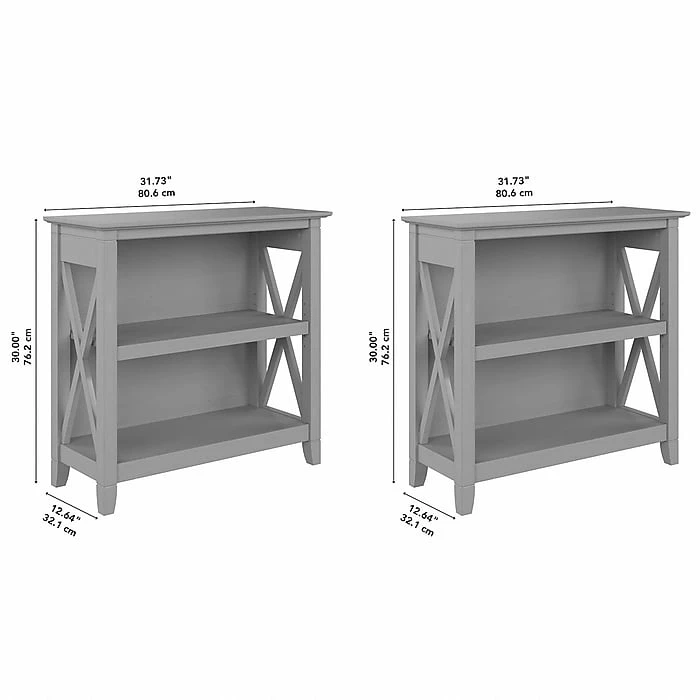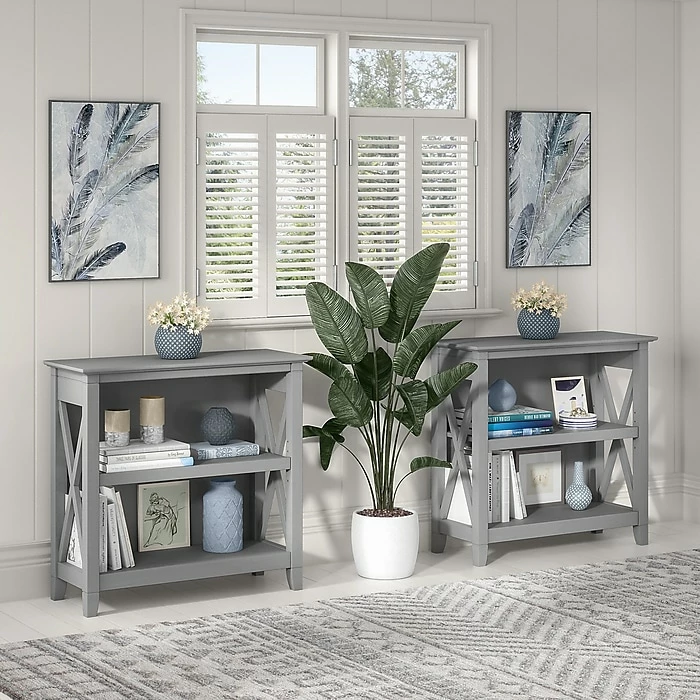 The Bush Furniture Key West small two-shelf bookcase offers a practical storage and display solution that gives your home a touch of casual style. This small bookshelf features a compact, versatile design that makes it a perfect choice for use in a home office, living room, entryway, or virtually any other residential space. One fixed shelf and one adjustable shelf accommodate books, reference materials, and decorations of various sizes. Each shelf supports up to 35 lbs., so you can store and display larger items with confidence. A post leg design and X-pattern accents convey a casual appearance that works well with cottage, coastal, and modern farmhouse style. This small bookcase has been tested to meet ANSI/SOHO quality standards for safety and performance and is backed by a 1-year warranty. See the full collection for coordinating items available.
