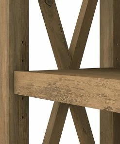 - Stylish X-shaped accents on side panels give the tall bookshelf set a relaxed and airy appearance