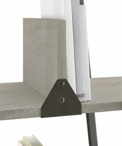- Unique and attractive A-frame bookcase made of engineered wood in cottage white finish