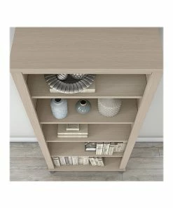 Turn any space into your own personal library with the Bush Furniture Somerset tall five-shelf bookcase. With a tapered leg design and your choice of several attractive finishes, this bookcase is a perfect way to organize any home office or living space. Two shelves are fixed to provide structural strength, and three are adjustable so your items are sure to fit. The height of the bookcase matches that of a Bush Furniture Somerset desk and hutch combination (sold separately) to create a coordinated appearance. Its sturdy construction and durable laminate finish allow you to display books, decorations, and more for years to come. This tall bookcase is tested to meet ANSI/SOHO standards for safety and performance and is backed by a 6-year manufacturer warranty. See the full collection for coordinating items to expand your home office.