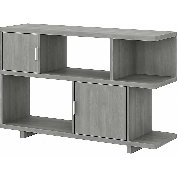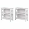 The Bush Furniture Universal two-shelf bookcase set of two provides a versatile organization solution that makes it easy to show off your personal library or brighten up the room with pictures and decorations. Perfect for residential and professional use, these horizontal bookshelves are designed to excel anywhere flexible storage and display capacity is needed. Each bookcase has a one-inch thick adjustable shelf that moves up and down to accommodate larger items like binders and photo albums while one fixed shelf offers added stability. Shelves support 45 pounds each, so storing paperback and hardcover books, DVDs, or video games is never a problem. Wall attachment hardware is included for family-friendly safety in a home office or living room.