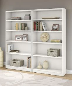 The Bush Furniture Universal 5 Shelf Bookcase features two fixed shelves for added stability and three adjustable shelves for storage flexibility. Personalize your home or office with books, photos, plants and decorative accents with sturdy 1 inch thick shelves. Design a complete wall unit or place coordinating bookcases anywhere in your interior with seven finishes and three height options. Family-friendly wall attachment hardware included. You’ll find many uses for this heavy-duty tall Bookcase in your home office, bedroom or small business. Solidly constructed, the 5 Shelf Bookcase meets ANSI/BIFMA standards for safety and performance. Backed by a 1 Year Warranty.