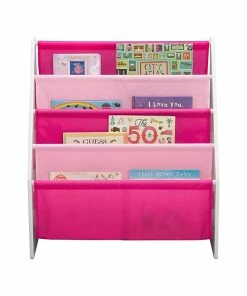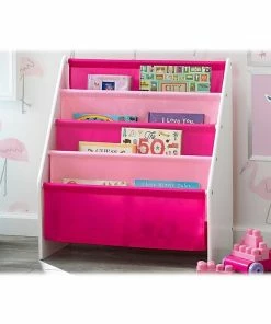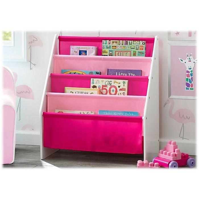 - Four pink soft fabric storage pockets offer the perfect storage space for books of all shapes and sizes, magazines, folders, binders, or coloring books