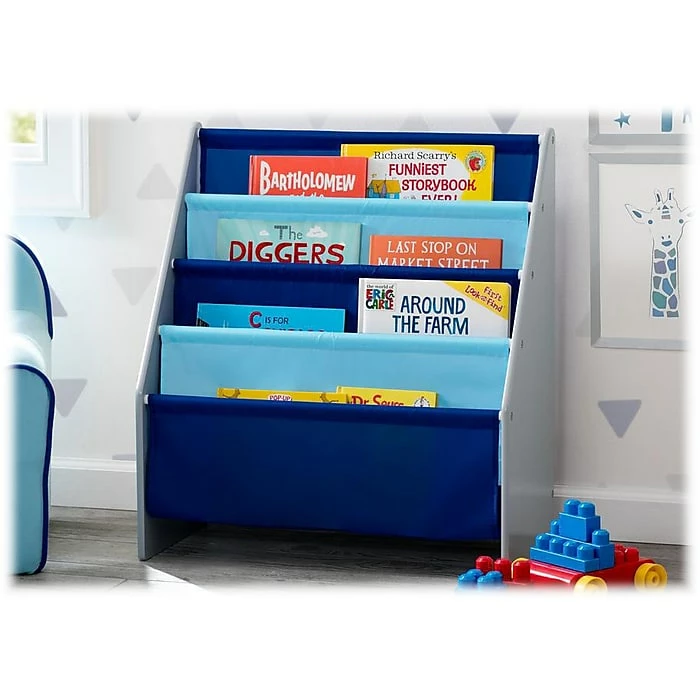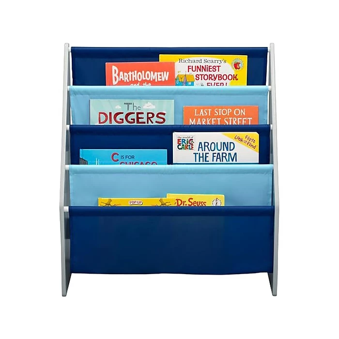 A perfect choice for your young scholar, this Sling Book Rack bookshelf for kids from Delta Children will help foster your child’s love of reading. Featuring four tiers of fabric storage pockets, it offers stylish storage space for books of all shapes and sizes. Designed at the perfect kid-sized height, this bookshelf makes it easy for kids to view and select their favorite titles, while varying, bright colors make it easy and fun to place the books back in their spot when they’re done reading. A great addition to the playroom, living room, or your child’s bedroom, the strong and sturdy wood construction ensures years of lasting use.