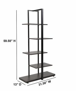 This decorative shelving unit screams style with its staggered shelving. Display all of your decorative items and photos.