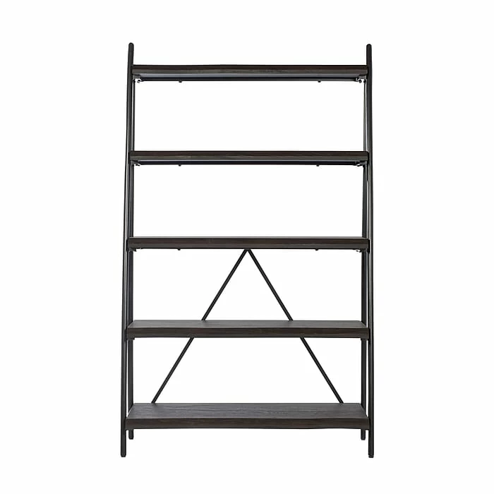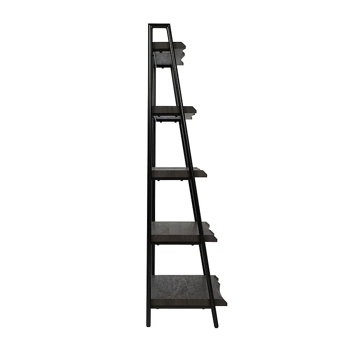 - 5-tier ladder design with textured wood grain finish (oak veneer)