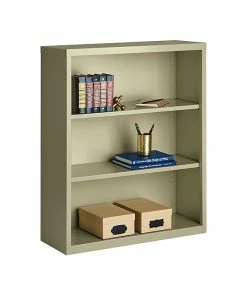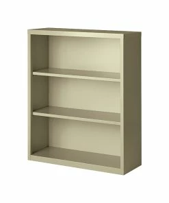 - Three-shelf steel bookcase in baked putty enamel finish perfect for schools, libraries, and offices