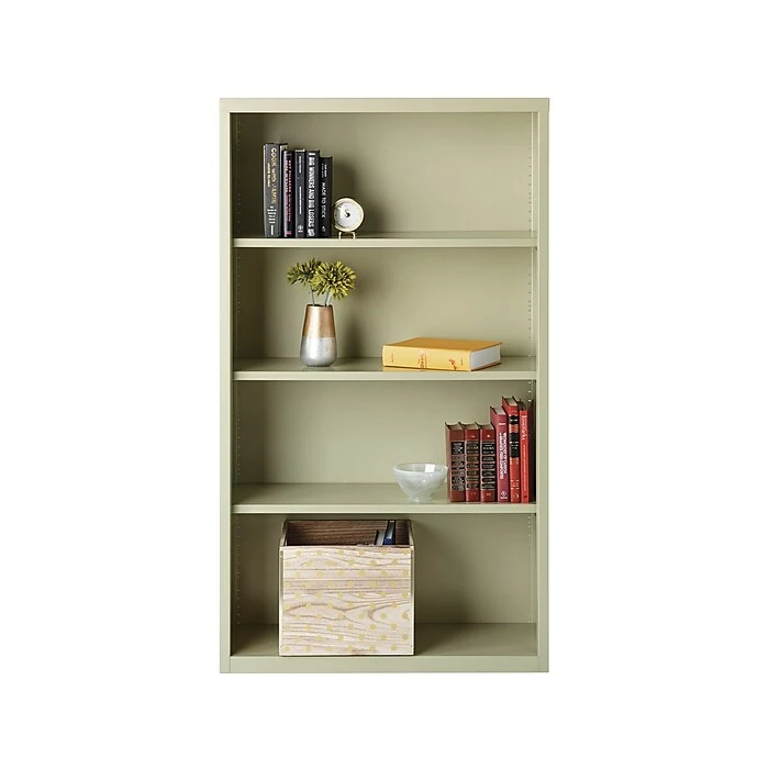 Make a statement in your office with this Hirsh four-shelf metal bookcase. The durable, fully welded construction bookcase is perfect for all of your home or office storage needs. This bookcase has a 200 lb. shelf capacity to provide smart and stylish organization. The shelves are adjustable in 1″ increments. The shelf count includes a fixed bottom shelf. The baked enamel finish gives it a polished look perfect for schools, libraries, and offices. Keep desk clutter at bay by storing documents and books in this bookcase. Create the perfect shelf space to store your belongings by adjusting the placement of the steel shelves. The painted steel surface is nonporous and easy to clean and disinfect. Comes with limited lifetime warranty. The unit meets or exceeds ANSI-BIFMA industry standards and is GREENGUARD Gold certified.