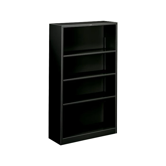 Organize work files for archiving and easy access with this black four-shelf metal bookcase. Its straight sides and back make it suitable for flush placement with cabinets and counters, and it’s fully assembled for hassle-free setup. Configure the three adjustable shelves of this HON Brigade metal bookcase to optimize the fit for specific items.