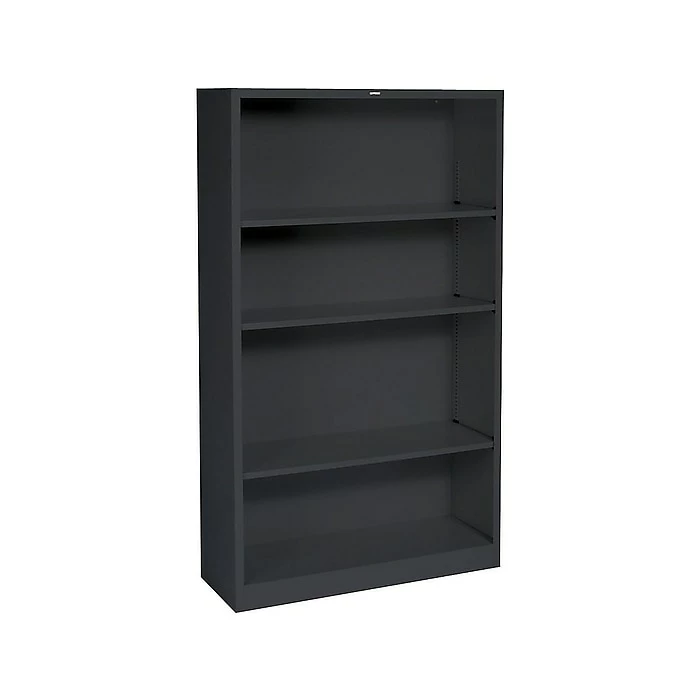 - Standard bookcase comes in black finish and provides plenty of storage space with durable steel construction