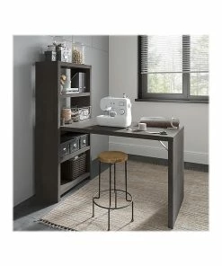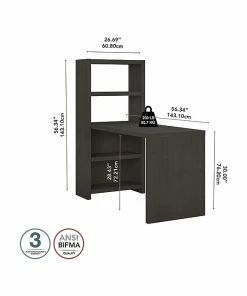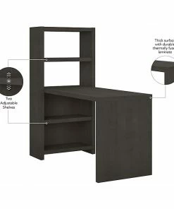 The Office by kathy irelandยฎ Echo bookcase desk brightens the workspace, kitchen, or craft room with a contemporary charm and unique space-saving design. Equal parts fashion and function, the bookcase desk offers two adjustable shelves for decoration or organization. Appealing to the modern small business or remote worker, an elegant finish inspires while a thermally fused laminate surface endures years of everyday use. Set up your laptop on the desk as you store work materials, books, and all the accessories to make you feel at home on the bookcase shelves. An attractive fit for more than just the office, the clever bookcase desk provides a compact solution as a craft table or dining table. The bookcase desk comes with a 3-year manufacturer warranty and meets the ANSI/BIFMA quality standards. Celebrate your unique style and personality with Echo.