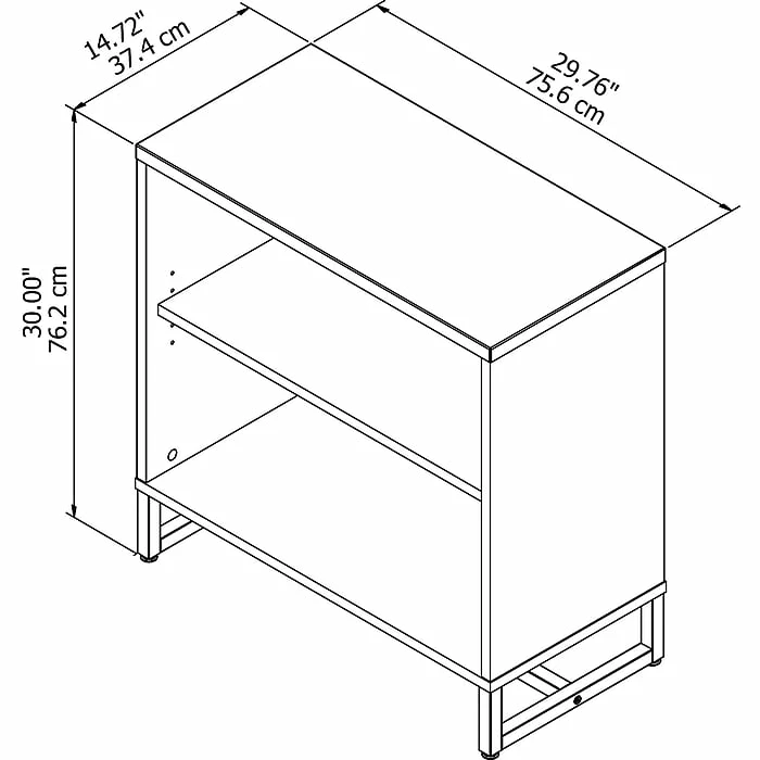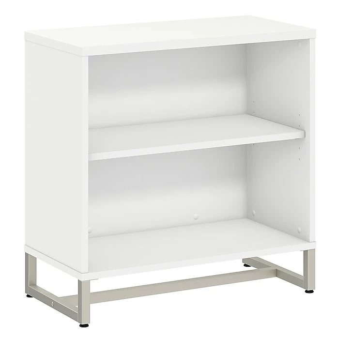 Embrace the unique styling of mid century modern design and enjoy ample storage with the Office by kathy irelandยฎ Method Bookcase Cabinet. The 2 shelf bookcase offers a beautiful and durable titanium finished metal base. Constructed of 100% thermally fused laminate, the modern bookcase fends off scratches and stains to maintain the attractive design. Organize your favorite books and reference materials while using the adjustable shelf to fit items of varying sizes. The convenient Bookcase Cabinet matches the height of your Method Table Desk (sold separately) to expand your work surface when positioned side by side. From Office by kathy irelandยฎ and Bush Business Furniture, the Method collection comes with a 6 Year Manufacturer’s Warranty and meets ANSI/BIFMA quality test standards. American made with U.S. and imported parts.