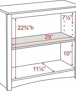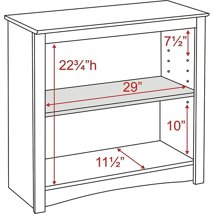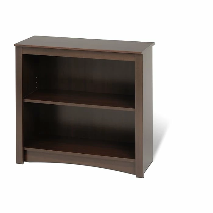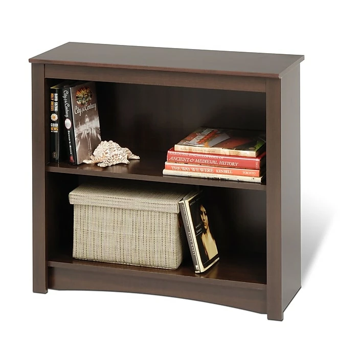 Prepacβ’ Espresso 2 shelf bookcase features two full-sized shelves with ample room to store books, baskets and other household items you need to organize. Bookcase has dimensions of 31.5″ x 29″ x 13″.