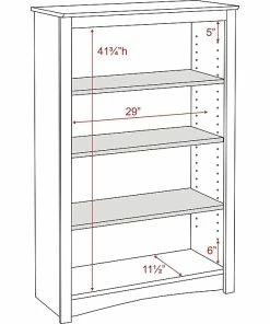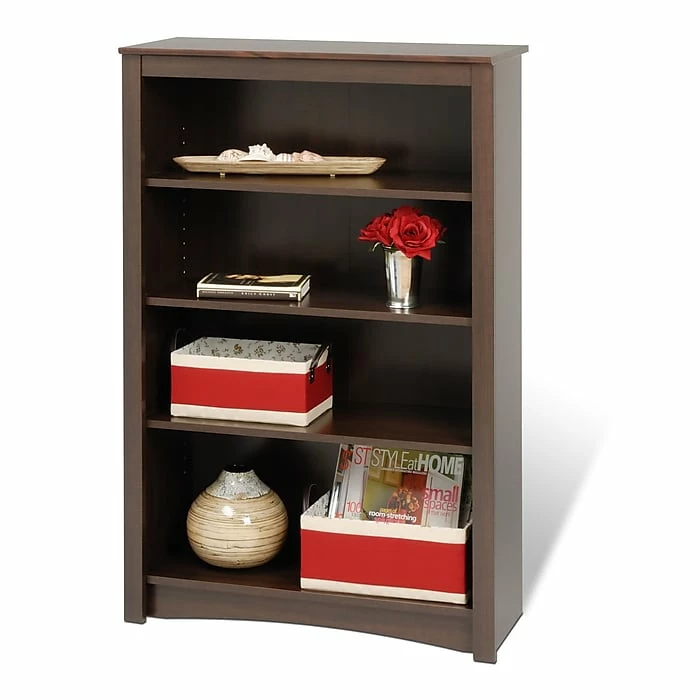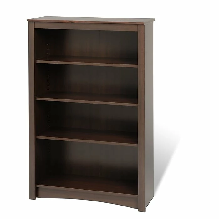Prepacβ’ Espresso 4 shelf bookcase features two full-sized shelves with ample room to store books, baskets and other household items you need to organize. Bookcase has dimensions of 31.5″ x 48″ x 13″.