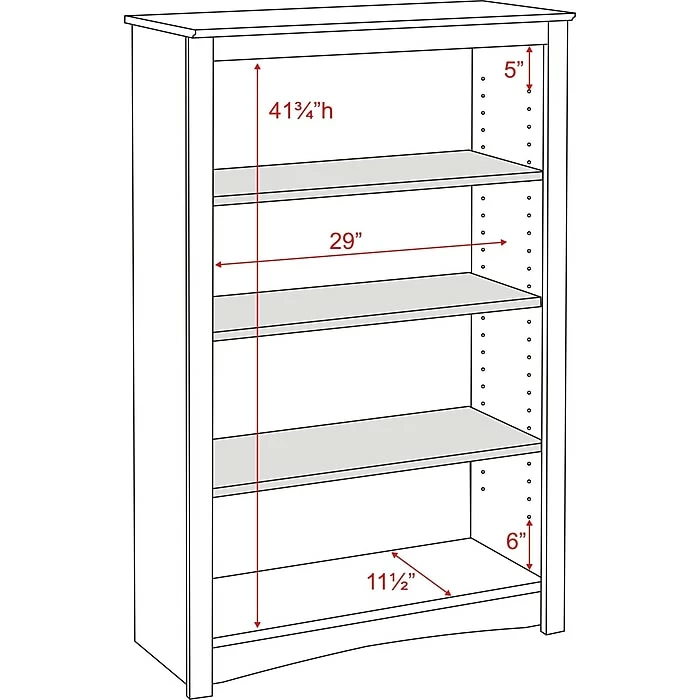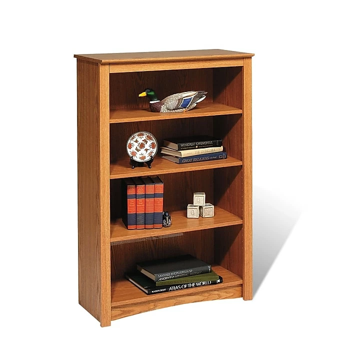 Prepacβ’ Oak 4 shelf bookcase features two full-sized shelves with ample room to store books, baskets and other household items you need to organize. Bookcase has dimensions of 31.5″ x 48″ x 13″.