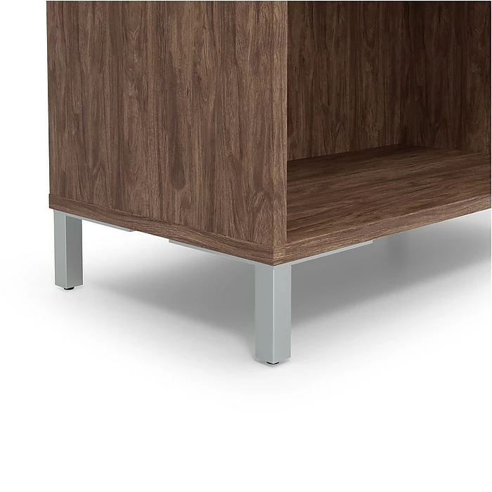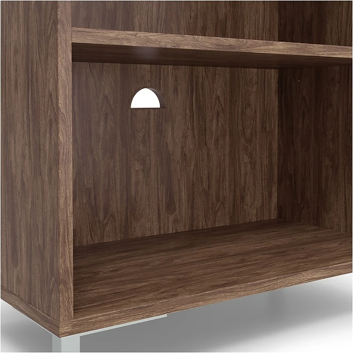 Create fresh, modern efficiency in your small office or cubicle with this three-shelf bookcase. The height-adjustable shelves let you store a multitude of items, while the grommet enables easy cable management, keeping your working space clutter-free. Featuring a small profile, the bookshelf fits well in cubicles or shared office spaces. With a rich finish and a simple silhouette, this Union & Scaleβ’ Essentials espresso three-shelf bookcase matches other pieces in the line for streamlined productivity.