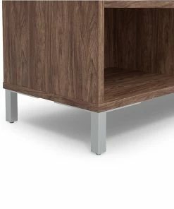 Boost productivity through increased organization with this modern, five-shelf espresso bookcase. Store books and magazines on the smaller left-side shelves, and place bins and file holders in the spacious right-side shelves to organize your workspace for productivity. This height-adjustable Union & Scaleβ’ Essentials five-shelf espresso bookcase lets you customize the available storage space, and the built-in grommet supports cable management for seamless electronics placement within your space.