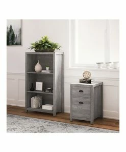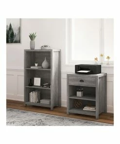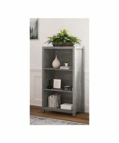 - Standard bookcase provides plenty of storage space, made of durable laminate, and comes in smoked ash/rustic warm gray finish